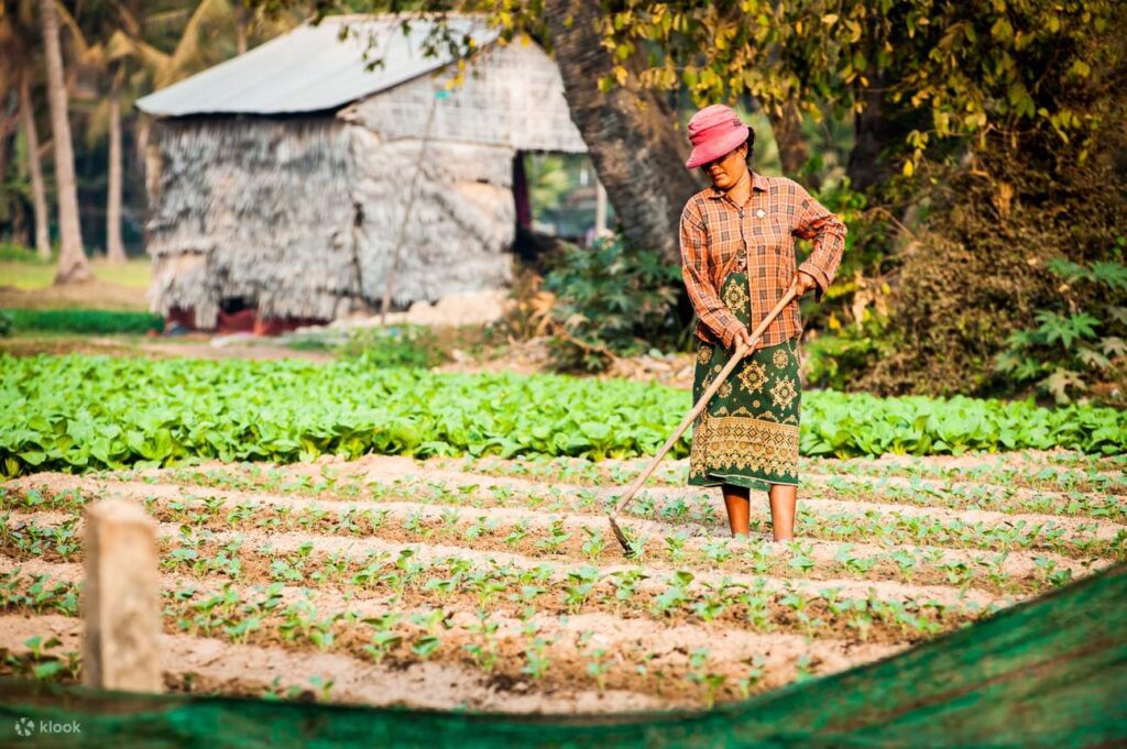 Keluar dari kompleks Angkor, Kamboja menunjukkan wajah yang jauh lebih sederhana. Desa-desa di sekitar Siem Reap menghadirkan pemandangan kehidupan lokal yang berjalan apa adanya. Rumah-rumah panggung berdiri di atas tanah merah, sementara sawah hijau membentang sejauh mata memandang.